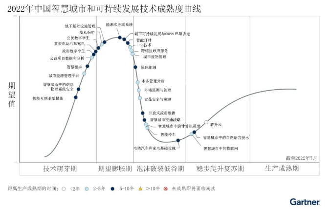 图一、2022年中国智慧城市和可持续发展技术成熟度曲线