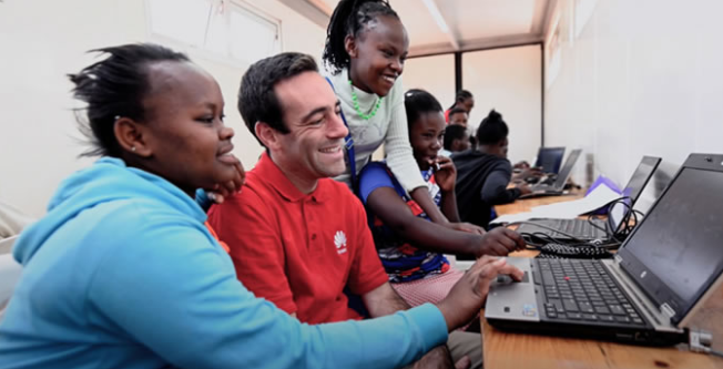 在国外,华为携手联合国教科文组织及当地政府职能部门,通过DigiSchool项目打造互联数字学校,为偏远区域的中小学师生提供网络连接、教学资源及技能培训,促进当地教学的连续性、公平性和优质性。目前这一项目已在肯尼亚、南非、塞内加尔等多个国家实施,数以万计的学生已经从中受益。