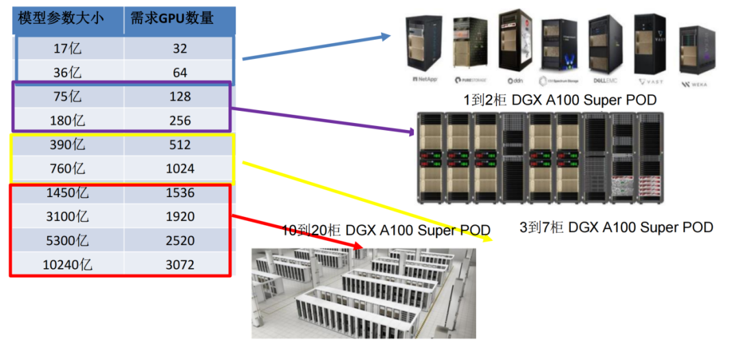GPT3大小的模型则需要10000+片A800 80G GPU;