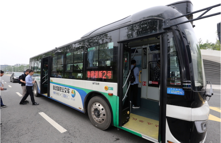 搭载联想和英特尔路侧算力技术的自动驾驶公交车