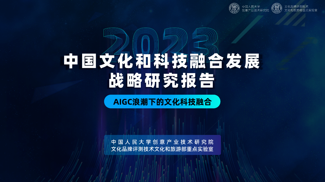 近日,中国人民大学创意产业技术研究院研究编制《中国文化和科技融合发展战略研究报告(2023)》,并在中国(南京)文化和科技融合成果展览交易会主论坛上正式发布。