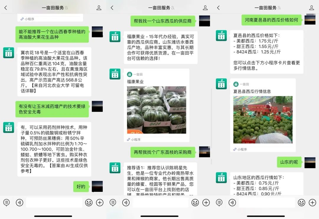 2023年6月,农产品批发采购平台一亩田正式对外发布基于大模型技术的农业AI对话机器人——“小田”。