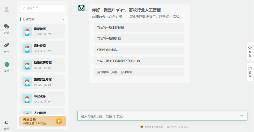 数字农业Insights发现,同类产品还有中国养猪网旗下畜牧行业人工智能玄田数据-PigGPT,可以选择让大语言模型扮演兽医、育种专家等多种角色。