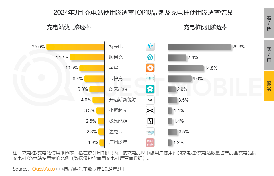 5.15充能市场头部品牌格局较为稳固,特来电、顺易充、星星充电桩使用渗透率较高,排名前三;此外,大部分品牌充电站及充电桩使用率均在10%以下,存在较大的上升空间