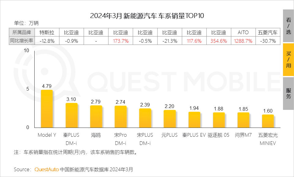 5.12车系销量方面,Model Y以4.79万辆位列销量榜首,比亚迪打响“价格战”和推出旗下多款新车,秦PLUS DM-i、驱逐舰05等车系占领七席,问界M7在新款车型带动下销量翻倍增长