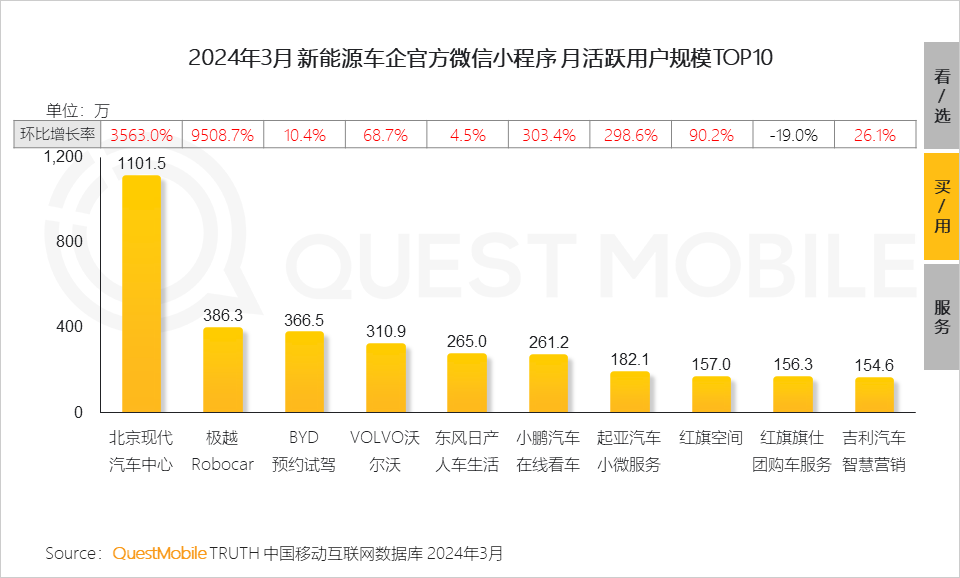 5.10 3月各大车企新车发布或产品迭代升级激发用户预约试驾积极性,各大车企官方小程序流量普遍增长