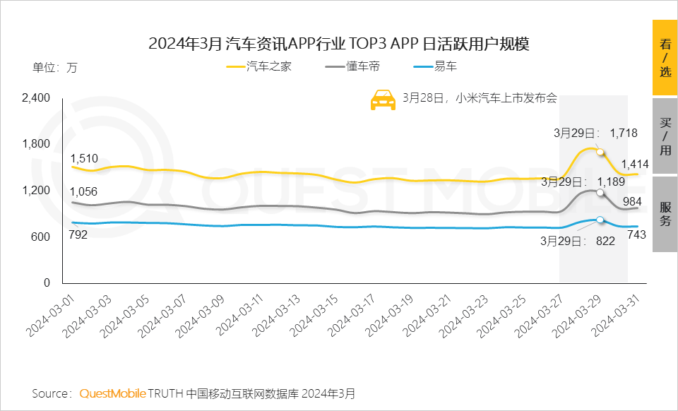 5.8此外,3月28日小米正式发布旗下首款车型SU7引发市场热议,同时带动三大典型汽车资讯平台在29日达到本月流量高峰