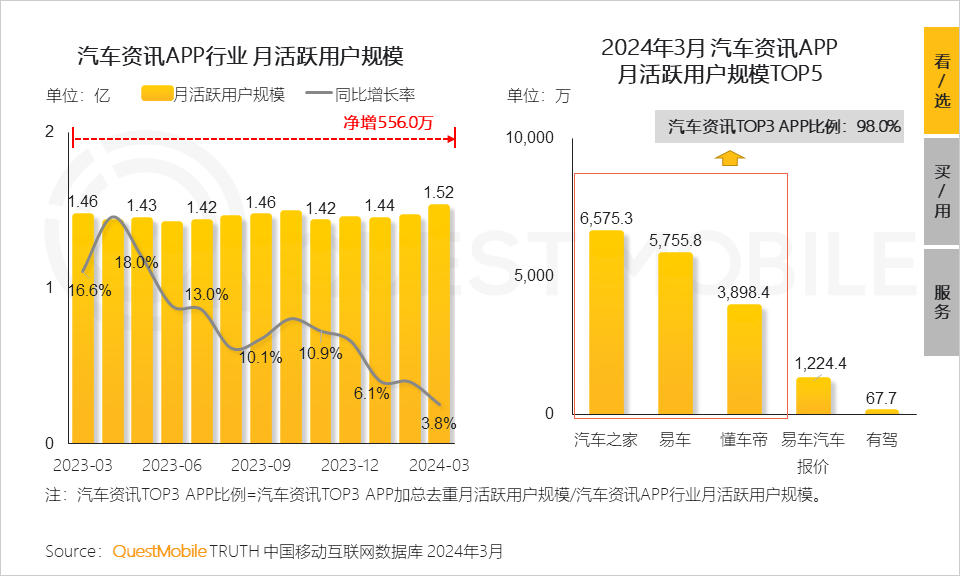 5.3随着汽车市场的快速发展,用户对于汽车内容需求的提升,促进汽车资讯APP行业用户规模增长;目前该行业市场集中度高,汽车之家、易车、懂车帝三大APP占据行业超九成流量