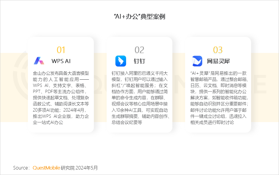 Ⅲ.AI正在成为提升工作效率和质量的重要工具,推动传统办公软件从辅助工具升级为生产力工具,金山办公、钉钉、网易等头部企业C端产品已较为成熟