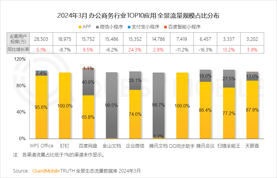 Ⅱ.企业微信、WPS Office等多个APP流量同比增长显著;电子文档应用以小程序作为主要渠道,方便用户共享编辑