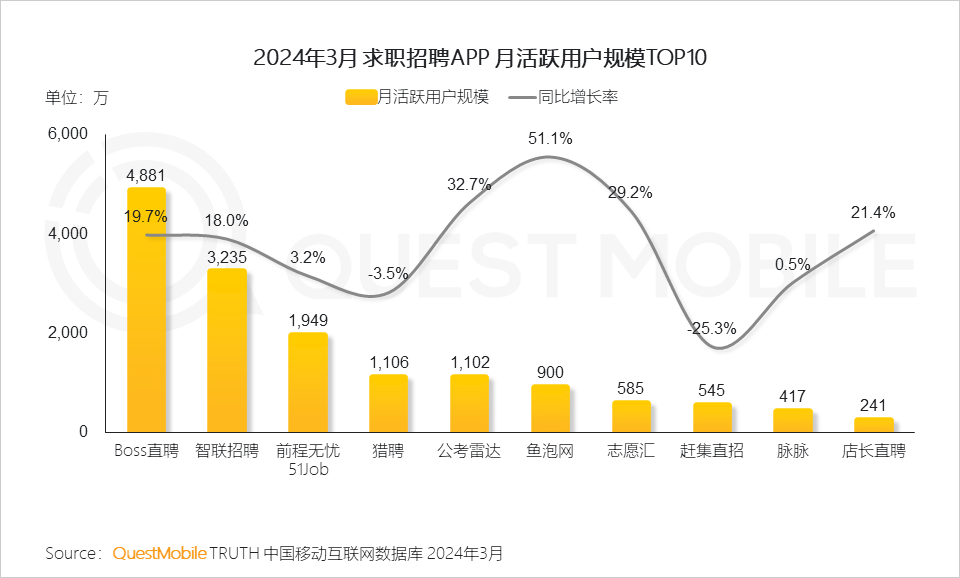 Ⅰ.春招市场热度持续升温,回归传统“金三银四”现象,招聘投递供需双端齐发力,多个招聘平台流量增长迅速