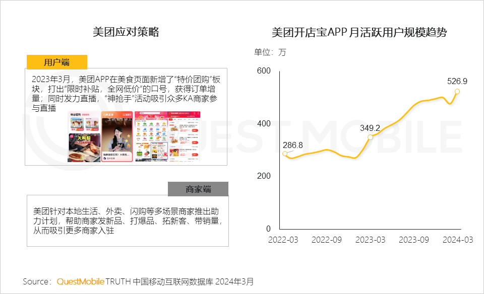 Ⅲ.美团面对本地生活赛道中新涌现的强劲对手,积极调整应对策略,加码直播与特价活动,同时抓住供给端丰富的核心优势,持续吸引商家入驻