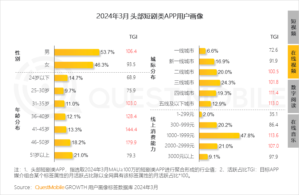 1.5短剧受到更多三线及以下城市、30-50岁中青年用户的青睐,该群体拥有着相对不错的线上消费能力