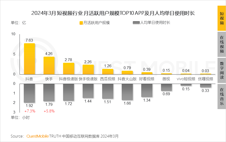 QuestMobile数据显示,2024年3月中国移动互联网活跃用户规模达到12.32亿,同比增量超2,000万。