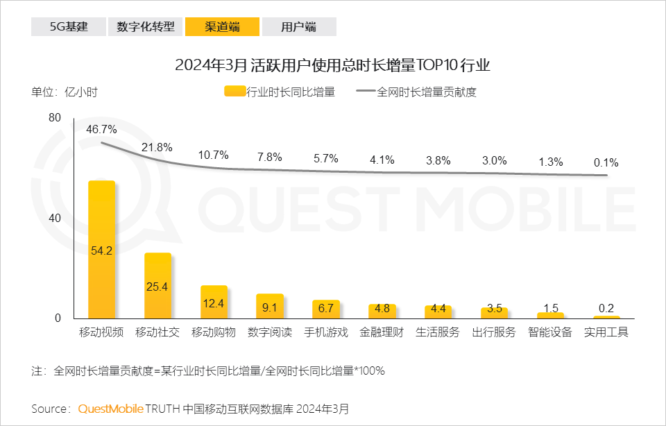 QuestMobile数据显示,2024年3月中高消费意愿的用户增长明显,成为移动互联网用户增量的主要构成。