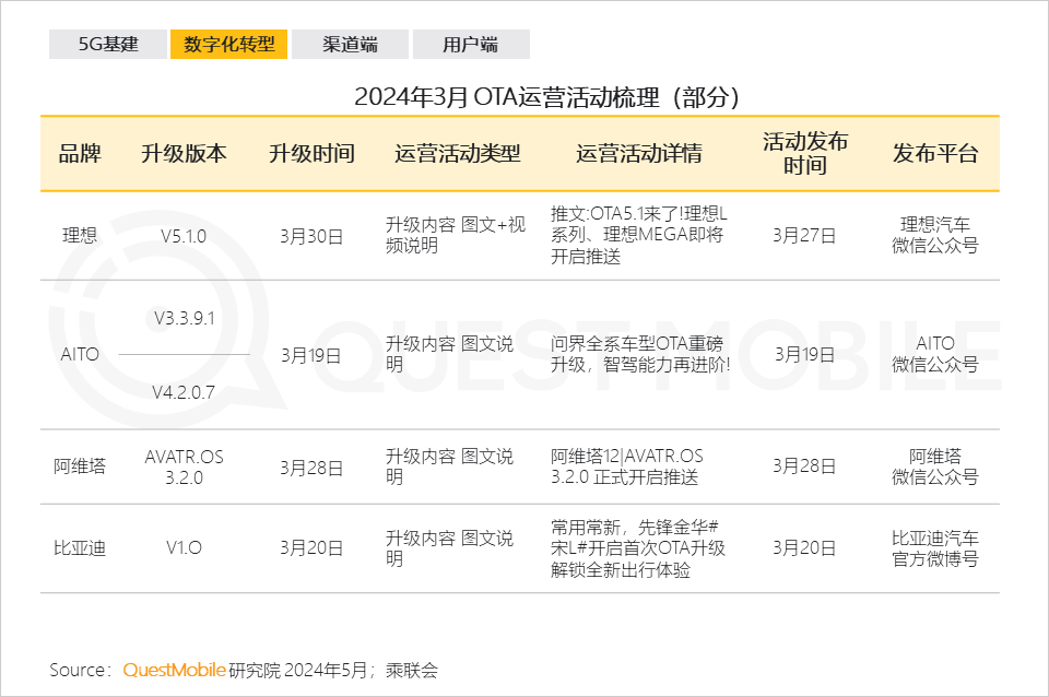 另外,2024年3月,汽车行业OTA升级项较上月显著上升,达534项,其中6成以上由新势力品牌贡献,经由这种方式,车企的“私域建设”越来越明显。