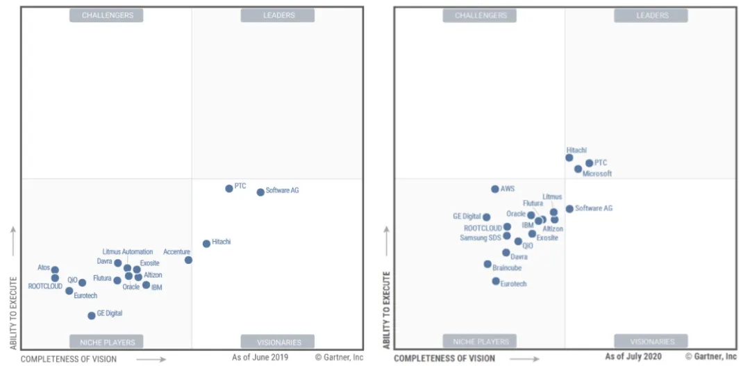 Gartner发布的从2019至2024年工业物联网平台魔力象限图