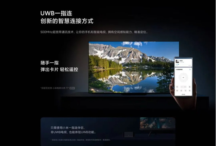 此前,小米MIX 4发布时首次搭载UWB技术,500MHz超宽带通讯技术带来“一指操控”和“一指投送”两大创新功能,让小米旗下的手机与智能电视小米大师77英寸OLED以及部分电视通过“一指连”功能操控智能家居设备。但自此次发布之后,小米就再也没有在旗下产品上更新过UWB技术。