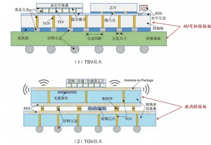 图为TSV技术与TGV技术区别(图源:广发证券发展研究中心)