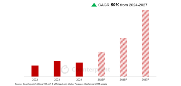 Counterpoint报告:2025上半年XR市场冷暖分化,AR大增50%但VR下滑14%