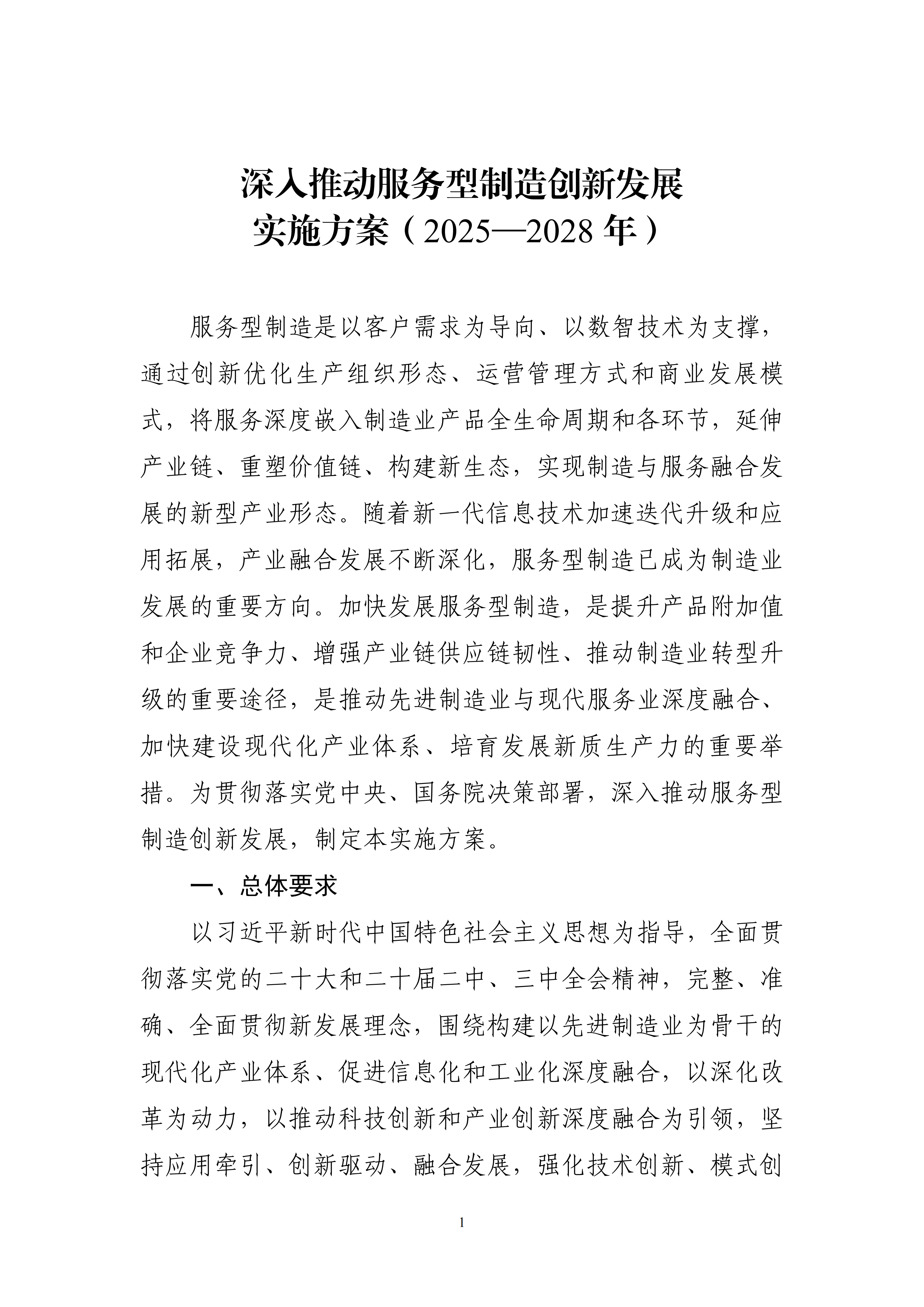 《深入推动服务型制造创新发展实施方案(2025—2028年)》