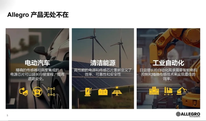 这组数据展示的,是一家半导体企业的业务轮廓,更是一个深耕磁传感与功率IC领域的隐形冠军——在半导体行业中,Allegro MicroSystems技术与产品已深度融入多领域场景:从汽车转向与动力系统到工业机器人精准控制,从数据中心高效散热到新能源领域电流监测,为全球产业的电动化与智能化转型提供技术支撑。