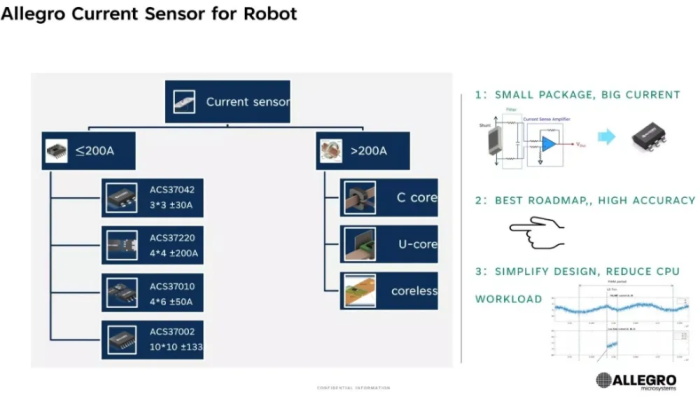 值得一提的是,机器人市场已成为Allegro的未来之星。随着人形机器人与工业自动化的发展,对高精度电机控制与位置传感的需求日益迫切——人形机器人的每个关节都需要1-2颗磁传感器,用于位置检测与力矩控制;工业机器人的机械臂则需要电流传感器监测负载,确保操作精度。Allegro的产品在高扭矩、低转速场景下的优势,恰好契合机器人需求。