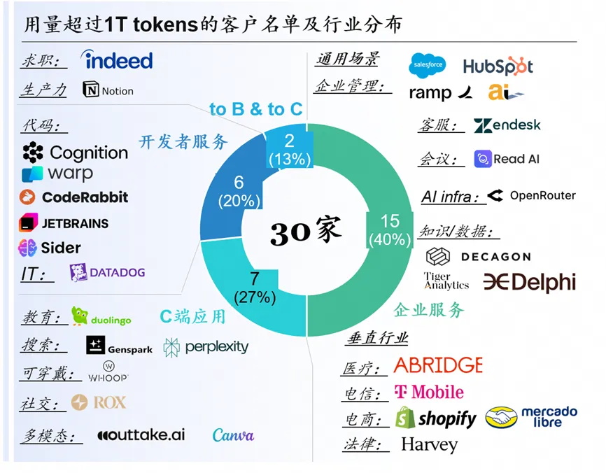 图:OpenAI用量超过1T tokens的客户名单及行业分布