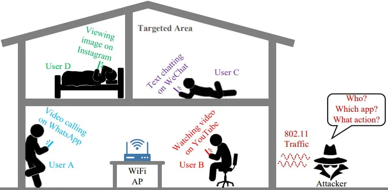 U-Print的攻击场景设定极具现实性:攻击者只需在目标环境(如办公室、咖啡馆、家庭住宅)的无线信号覆盖范围内,放置一个被动Wi-Fi嗅探器(如配备特定网卡的笔记本电脑)。攻击者无需知晓Wi-Fi密码,也无需接入目标网络,只需物理上接近目标区域,即可开始捕获空中传输的802.11数据帧。