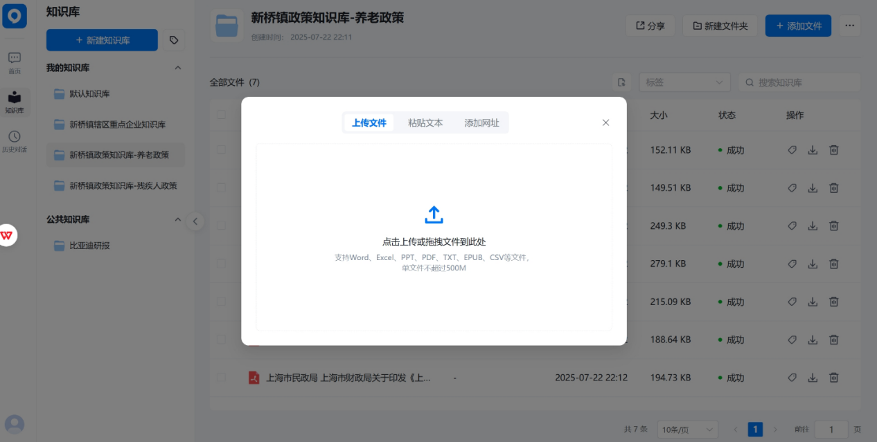• 基于先进的自然语言处理(NLP)和人工智能技术,提供强大的语义检索功能。用户可通过自然语言提问(如“新桥镇办理个体户需要什么程序?”、“新桥镇70岁的老年人能够享受什么服务?”),平台能精准理解意图。
