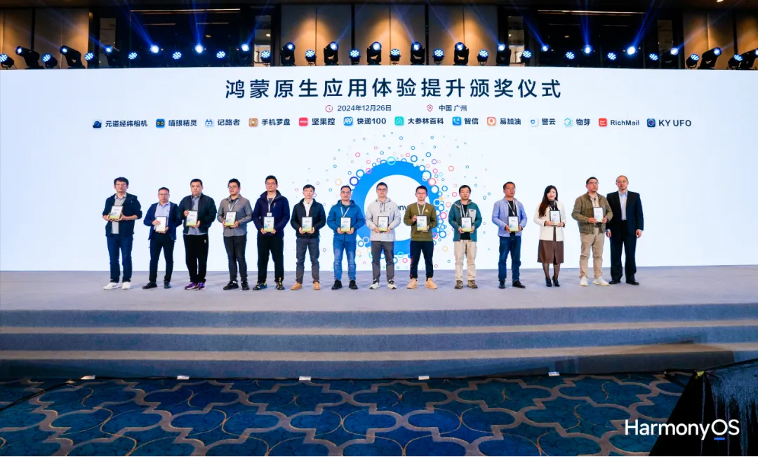 「纯智快递100」荣获鸿蒙原生应用体验提升奖快递100代表上台领奖(左六)