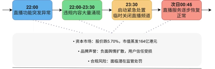 2025年12月22日22时许,快手平台直播功能突发异常,大量包含淫秽色情、暴力低俗内容的直播间瞬间涌现,呈现出明显的“自动化批量攻击”特征——黑灰产团伙操控数万个“僵尸账号”同步开播,播放预制的非法视频,即便平台后台持续封禁,违规内容仍如潮水般新增,审核系统一度陷入失灵状态。为遏制事态扩散,快手于当晚23时30分启动紧急处置,临时关闭直播频道,直至23日凌晨0时45分左右,直播服务才逐步恢复正常。