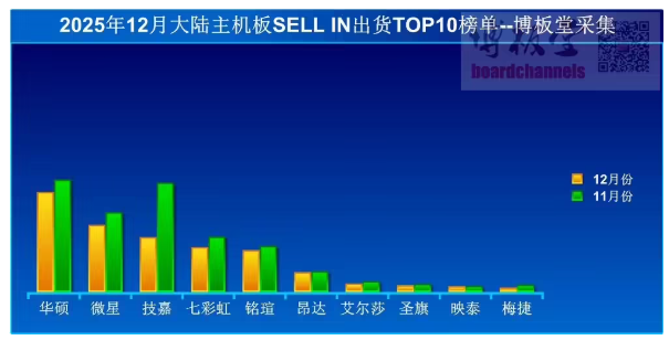 1月20日消息,博板堂今日公布的最新统计数据显示,2025年12月中国大陆地区主板出货量呈现显著下滑态势。