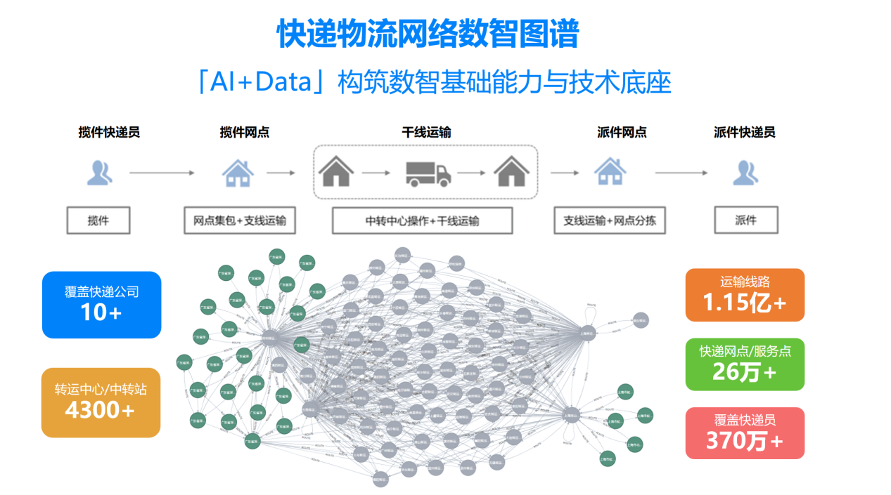这个图谱解析了中国快递物流的运行规律,支撑智能时效预估、异常预警等核心能力。发布初期,预测准确率只有80%,经过持续优化,现在已达到95%,数据更新频率更是达分钟级。
