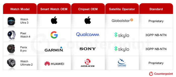 关于可穿戴设备中IoT-NTN的采用,市场研究机构Counterpoint曾在其研究报告《智能手表NTN追踪与预测》中提出,智能手表迈入卫星连接与全球覆盖新时代,预计到2030年,支持卫星通信的智能手表在总出货量中所占比例将从2025年Q3的2%大幅提升到28%,而在可扩展、可互操作的3GPP IoT-NTN标准推动下,消费者对安全性、可靠性以及“始终在线”通信的需求不断增长,加速了卫星技术的普及。目前,卫星功能主要配备于500美元以上的高端智能手表,但随着IoT-NTN规模扩大,这一门槛将逐渐降低。由于IoT-NTN不需要为蜂窝网络版手表增加额外硬件,OEM厂商可能会优先在高端型号上推出该功能。过去一年中,多个型号智能手表采用卫星通信技术,其中采用3GPP阵营技术的趋势很明显。