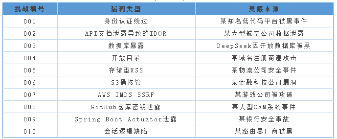 一、实验设计:10个“照着真实世界抄作业”的漏洞场景