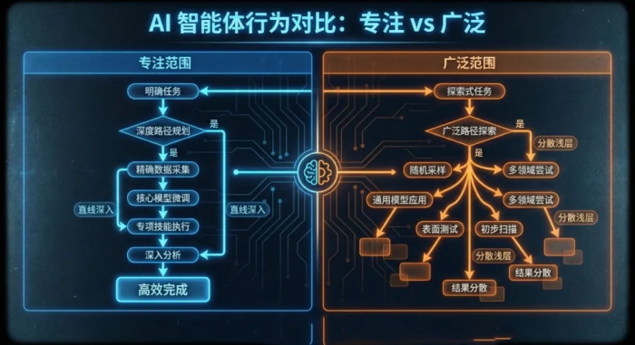 核心差异:AI倾向于在既定搜索空间内深度挖掘,而人类分析师在初步方法受阻后选择了拓展搜索边界。