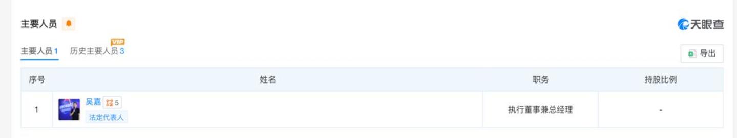天眼查APP信息显示,目前千问APP所属公司广州大鱼快乐信息技术有限公司的法定代表人、执行董事兼总经理正是吴嘉。