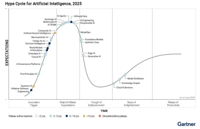 根据Gartner发布的2025人工智能成熟度曲线,AI Agent正处于泡沫顶峰,会导致人们对其价值产生非理性的过高预期。AI Agent有高度的价值,但也不能神话其作用。未来的工业软件将是机理模型+AI算法+企业数据的融合体,工业机理与数学模型是“骨架”,企业数据是“血液”,AI则是“神经中枢”。AI大潮并非工业软件的终结,而是工业软件智能化时代的开端!
