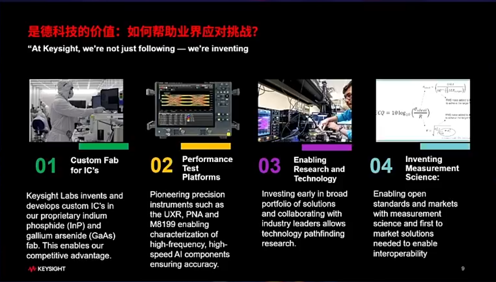 面对上述系统性挑战,是德科技的价值远不止于提供测试仪器。其核心价值在于,通过深度的测量科学、前瞻性的技术投入和广泛的产业协同,帮助客户跨越从芯片到集群的鸿沟,确保AI基础设施的性能、互操作性与可靠性。