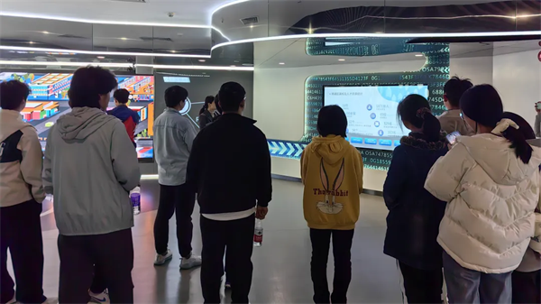 首站上海数智体验馆作为国内首个城市级数智领域公共体验场馆,集中展示了上海重点产业的规划布局、标杆场景与特色实践。同学们重点参观了体验馆第二层展区,展陈内容贯通了从底层硬件到上层应用的完整技术链条:从基础芯片、算力生态与语料,到大模型技术体系、具身智能机器人,再到先进装备、船舶与海洋工程等强国重器,以及智能汽车与大飞机产业。通过系统性的参观学习,同学们深刻感受到数字技术与实体经济深度融合的磅礴力量。