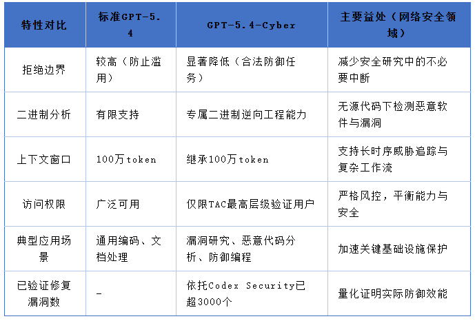 网络安全许可模式(Cyber-Permissive):相较于标准GPT-5.4,该模式更为宽松,允许处理各类敏感网络安全查询,避免频繁拒绝合法的防御任务。这一优化有效解决了众多安全团队此前反馈的“操作摩擦”问题,提升了防御工作的连贯性。
