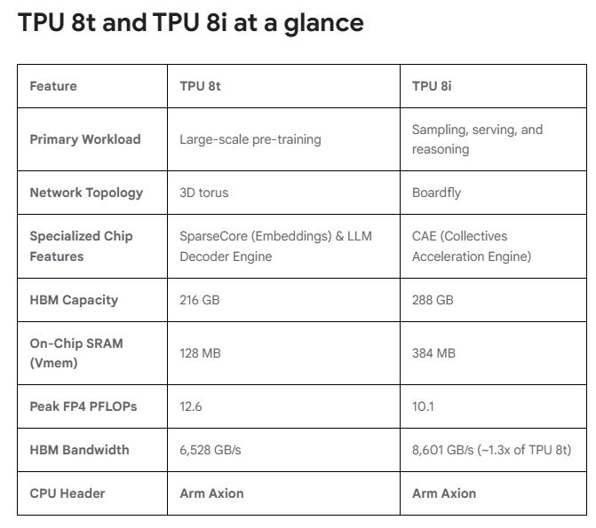 谷歌发布第八代TPU,训练推理分离,搭载自研CPU