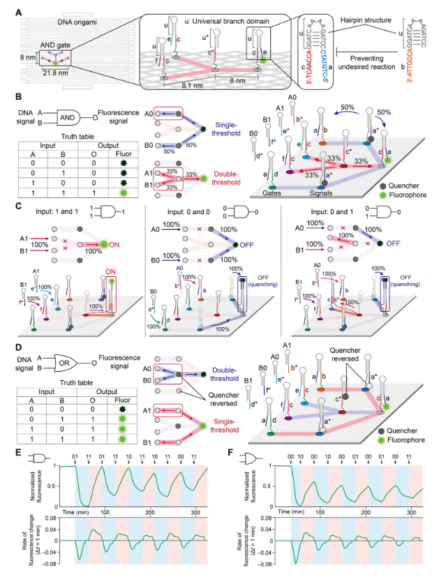 DNA凭借其碱基互补配对的特性,可实现精准可编程反应,且碱基对间距仅为0.34纳米,为超微型信息处理提供了理想平台。